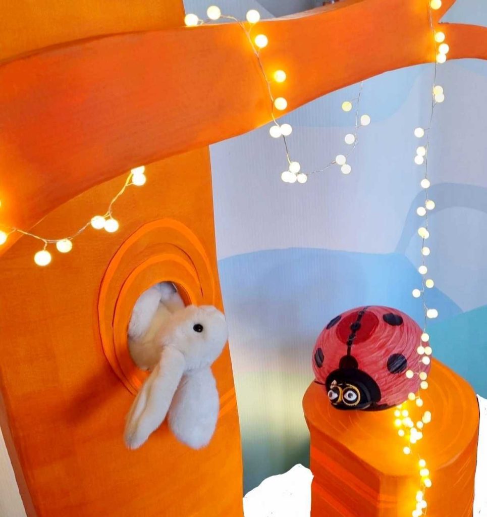 Ils y retrouvent les personnages du jardin à travers des jouets rigolos, des livres, des marionnettes, des puzzles, des peluches, des hochets et une tente géante disposée sur des tapis.